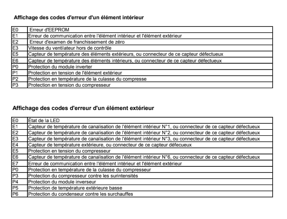 Signification des codes erreurs pour multisplit ALTECH