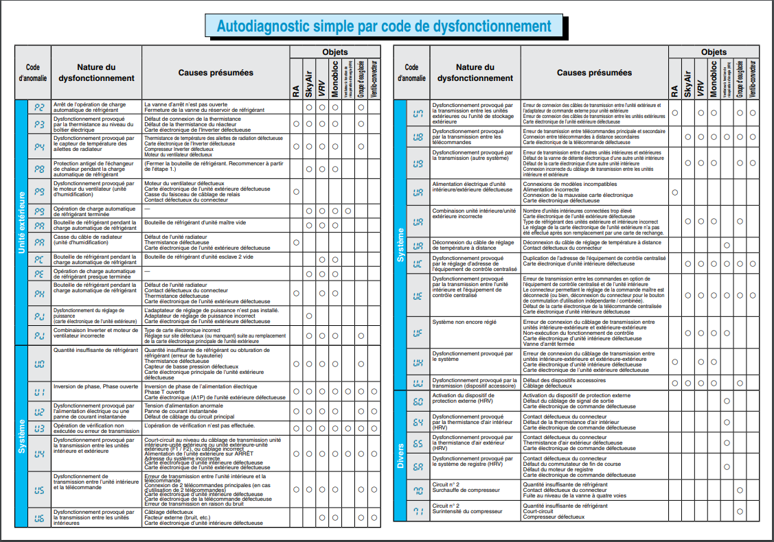 Cliquez sur la photo pour voir la signification de votre code erreur DAIKIN